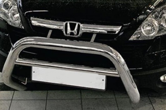 Передняя решетка Honda CR-V (кенгурятник) – это защитная дуга на бампер из нержавеющей стали диаметром 76 мм с перемычкой диаметром 51 мм.