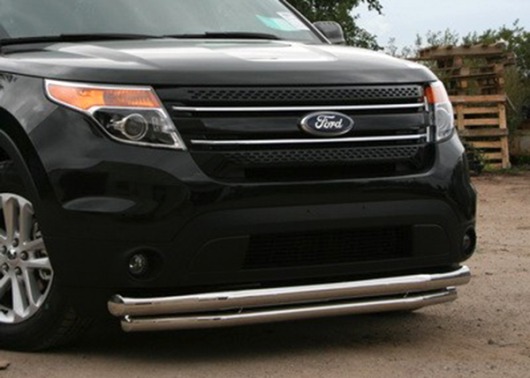 Защита переднего бампера для Ford Explorer – это двойная труба на бампер из нержавеющей стали диаметром 76/60 мм.