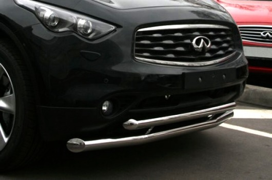 Защита переднего бампера для Infiniti FX – это двойная труба на бампер из нержавеющей стали диаметром 76/60 мм.