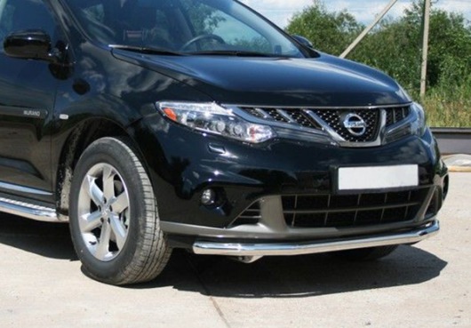 Труба на бампер Nissan Murano защищает передний бампер автомобиля от различных механических повреждений при мелких ДТП и неудачных парковках, а также незаменима при езде по бездорожью. А кроме этого, труба на передний бампер Ниссан Мурано смотрится очень стильно и эффектно.