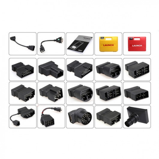 • Комплект адаптеров для подключения к диагностическим разъемам старого образца: (Benz-38, BMW-20, SsangYong-20, Honda-3, Honda-5, Subaru-9, Daewoo-12, Toyota-17, Toyota-22, Ford-6+1, Chrysler-6, Mitsubishi-Hyundai-12+16, KIA-20, Mazda-17, Nissan 14+16, Benz-14, SsangYong-14, Audi-4, Fiat-3, Universal-3, Daihatsu-4, GAZ-12, Geely-22, Suzuki-3, GM/VAZ)