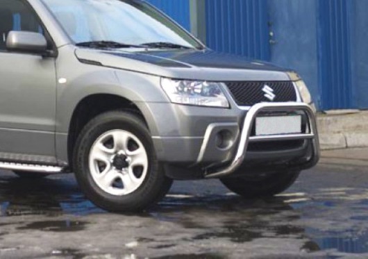Передняя решетка Suzuki Grand Vitara (кенгурятник) – это защитная дуга на бампер из нержавеющей стали диаметром 60 мм.