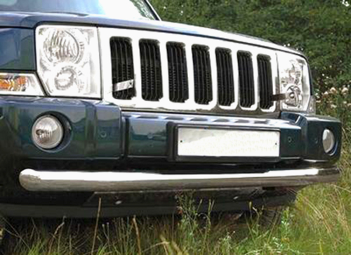 Труба на бампер Jeep Commander защищает передний бампер автомобиля от различных механических повреждений при мелких ДТП и неудачных парковках, а также незаменима при езде по бездорожью. А кроме этого, труба на передний бампер Джип Коммандер смотрится очень стильно и эффектно.