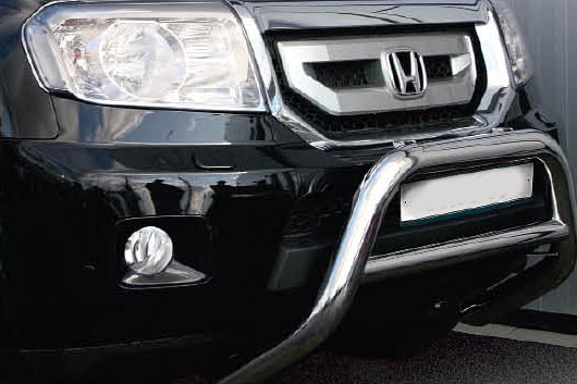 Передняя решетка Honda Pilot (кенгурятник) – это защитная дуга на бампер из нержавеющей стали диаметром 76 мм.