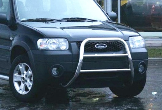 Защитная решетка переднего бампера предназначена для автомобилей Ford Maverick от 2004 г.в. Вам не придется подгонять передний кенгурятник под размеры кузова вашего авто. И с монтажом проблем не возникнет: установка кенгурятника Ford Maverick производится в штатные отверстия, а значит, необходимость сверлить кузов отпадает.