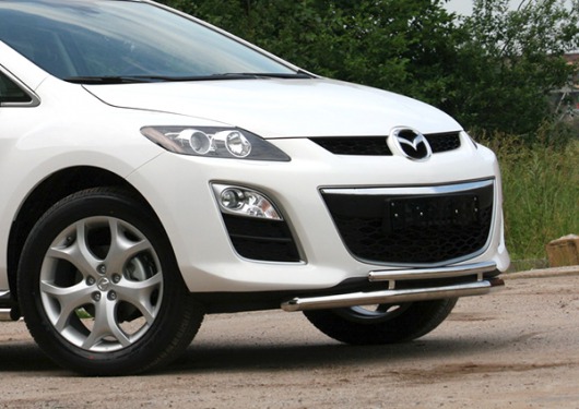 Защита переднего бампера для Mazda CX-7 – это двойная труба на бампер из нержавеющей стали диаметром 60/42 мм.