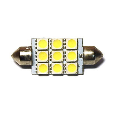Светодиодная лампа 9 SMD построена на базе 9 сверхярких SMD светодиодов, восемь из которых расположено по окружности лампы, а один - на конце. Лампа предназначена для освещения салона.