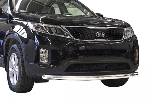 Труба на бампер Kia Sorento защищает передний бампер автомобиля от различных механических повреждений при мелких ДТП и неудачных парковках, а также незаменима при езде по бездорожью. А кроме этого, труба на передний бампер Киа Соренто смотрится очень стильно и эффектно.