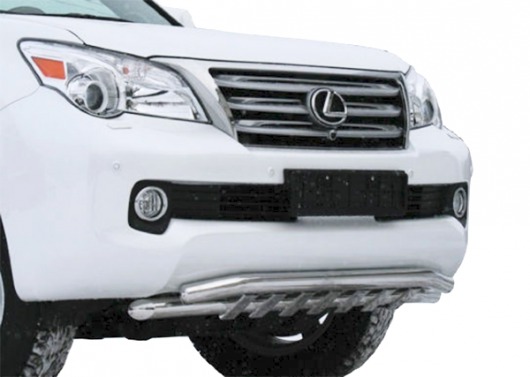 Защита переднего бампера труба с декоративными профильными элементами предназначена для автомобилей Lexus GX460. Вам не придется подгонять защиту под размеры бампера вашего авто. И с монтажом проблем не возникнет: установка защиты переднего бампера производится в штатные отверстия, а значит, необходимость сверлить кузов отпадает.