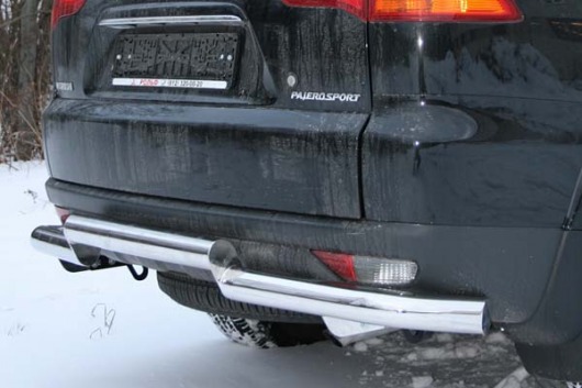 Защита заднего бампера для Mitsubishi Pajero Sport – это двойная труба на бампер из нержавеющей стали диаметром 76/76 мм.
