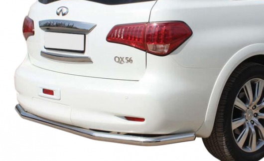 Труба на задний бампер Infiniti QX 56 защищает задний бампер автомобиля от различных механических повреждений при столкновениях на дороге и неудачных парковках. А кроме этого, защита заднего бампера для Инфинити QX 56 — это дополнительная деталь тюнинга.