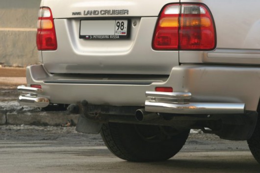Защита заднего бампера для Toyota LC 100 – это двойные защитные уголки на бампер из нержавеющей стали диаметром 76 мм.