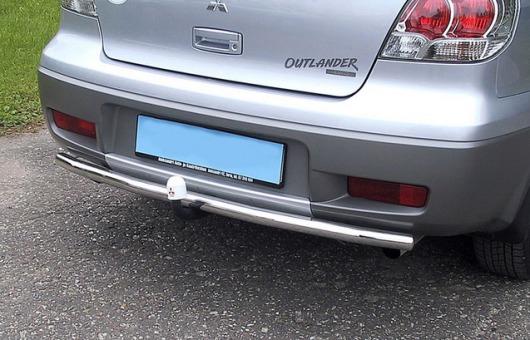 Защита заднего бампера труба Premium предназначена для автомобилей Mitsubishi Outlander от 2012 г.в. Вам не придется подгонять защиту под размеры бампера вашего авто. И с монтажом проблем не возникнет: установка защиты заднего бампера производится в штатные отверстия, а значит, необходимость сверлить кузов отпадает.