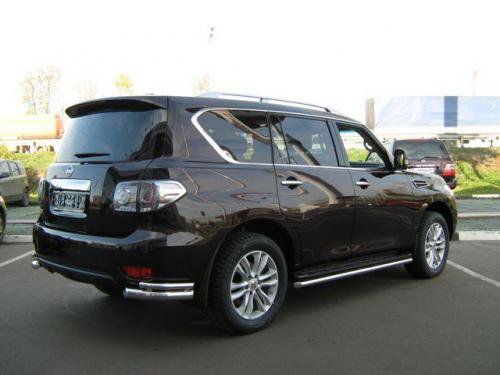Уголки на задний бампер Nissan Patrol защищают задний бампер автомобиля от различных механических повреждений при столкновениях на дороге и неудачных парковках. А кроме этого, защита заднего бампера для Ниссан Патрол — это дополнительная деталь тюнинга.