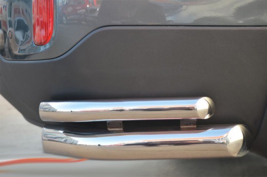 Защита заднего бампера для Kia Sorento – это двойные защитные уголки на бампер из нержавеющей стали диаметром 60/42 мм.