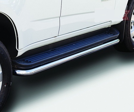 Защита для порогов Chevrolet Trailblazer – это накладки на пороги из нержавеющей стали в форме трубы диаметром 60 мм. Главное их назначение – защита подножек авто от износа.