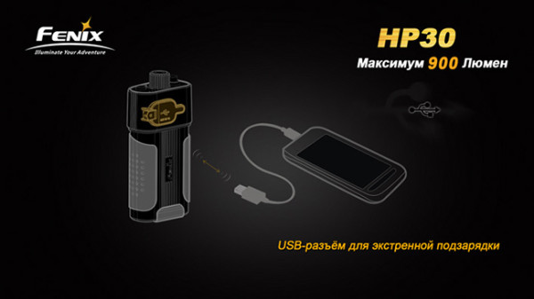 Налобный фонарь Fenix HP30 – уникальная модель. Обладая абсолютно беспрецедентной мощностью в 900 люмен, этот налобный светодиодный фонарь является безоговорочно номером один в своём классе по яркости. Это делает модель оптимальным выбором для охотников, рыболовов, спелеологов, альпинистов. Помимо этого, у Fenix HP30 есть несколько уникальных свойств – с него можно даже заряжать мобильные устройства!