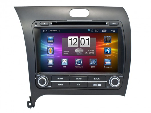 Штатная магнитола Navipilot Droid 2 для Kia Cerato от 2013 г.в. — мультимедийный комплекс нового поколения с максимальным количеством функций. Эта революционная новинка 2014 года построена на самой передовой базе ОС Android 4.2.2 (версия прошивки v.2.127), невероятно проста в управлении, и обладает широчайшими возможностями для вашего максимального комфорта в пути!