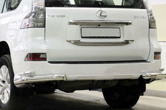 Защита заднего бампера для Lexus GX460 – это двойные защитные уголки на бампер из нержавеющей стали диаметром 76/42 мм.