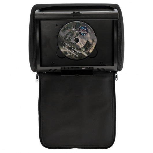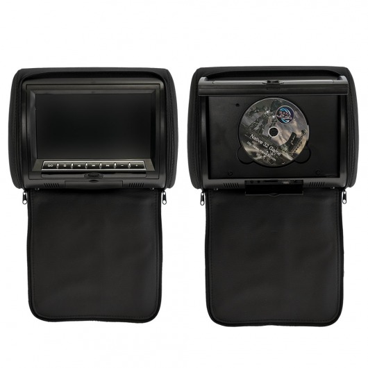 Обивка автомобильных подголовников с мониторами и DVD изготовлена из искусственной кожи высокого качества черного, серого или бежевого цвета. Нужный вам цвет выберите в поле над ценой.