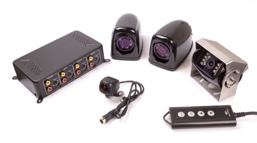 Изображение с камер поступает на монитор. Причем, на экране может одновременно отображаться картинка с двух, трех или сразу четырех камер в нормальном или зеркальном виде. Экран при этом делится на соответствующее число частей. Такая возможность возникает благодаря коммутатору, который объединяет видеосигнал со всех камер.