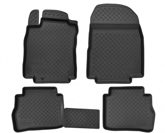 Полиуретановые коврики для автомобиля гладкие, приятные и не пропускают влагу. Черный цвет универсален и подойдет любому авто. В комплекте вы получите 4 коврика в салон автомобиля.