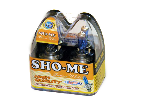 Галогеновая лампа Sho-Me H7 B4 (+ 80%)  совмещает в себе высокое качество и доступную цену. Всемирно известный бренд и высокие технические характеристики говорят лучшее любых слов. Лампа предельно просто монтируется и довольно долго служит, на всем протяжении срока службы сохраняя свои осветительные качества. Повышенная светоотдача + 80%.