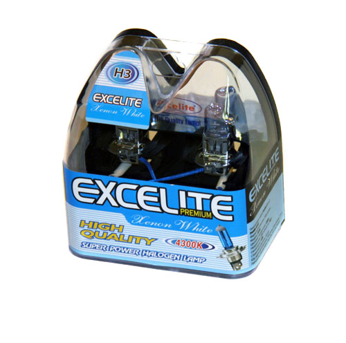 Галогеновая лампа Excelite H3 B2 со светоотдачей, увеличенной на 80%,отличается стабильной работой, а пучок света за счет этого увеличен на 20 метров. Специальное голубое напыление на колбе подволяет достичь световой температуры в 4300К.