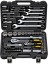 В комплект набора для авто входят следующие предметы: торцевые и свечные головки, трещотку, переходник для электроинструмента, биты и многое другое. Подробную комплектацию вы можете посмотреть в «Характеристиках», во вкладке справа.