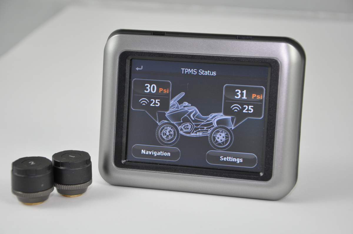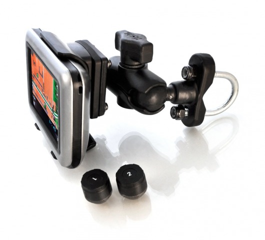 Датчики накручиваются на колесные вентили. После установки элементов питания, датчик начинает измерять  давление и температуру. Полученные данные передаются на большой ЖК-дисплей, который вы можете установить в любом удобном месте в мотоцикле, и сразу же отображаются на экране. Дисплей комфортно отображает нужные данные. Если показатели выходят за пределы, которые вы устнавливаете, система предупреждает при помощи подсветки дисплея и звукового сигнала.