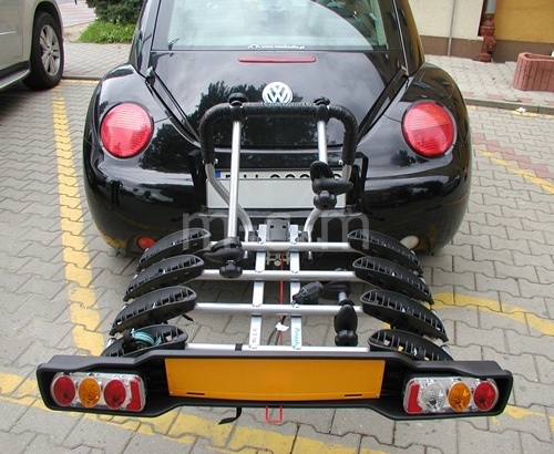 Немаловажной особенностью является функция наклона велобагажника при установленных велосипедах. Это гарантирует удобный доступ к велосипедам и багажнику автомобиля. Таким образом если вам нужно взять или положить в автобагажник вам не придется снимать велосипедное крепление. Велосипеды крепятся за раму с дополнительной фиксацией колес к стальному рельсу на усиленных пластиковых фиксаторах. Рамы надежно фиксируются держателями