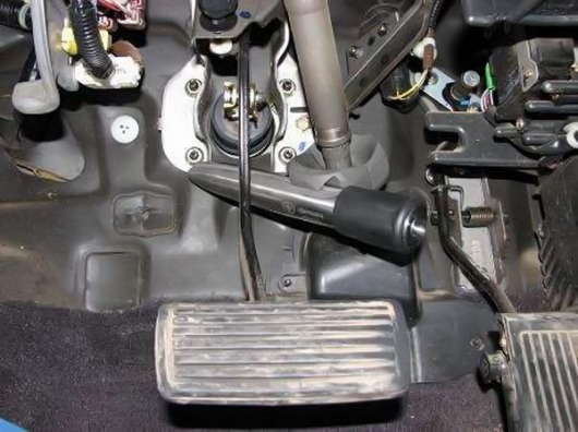 Замок блокирует рулевой вал с помощью муфты, жёстко закреплённой на рулевом валу машины. Стопор устанавливается в муфту автоматически без манипуляции ключом. А вот снимается стопор с муфты с помощью штатного ключа. Поворот его по часовой стрелке на 90° - считывание кода «Замка», на 180° - рабочий ход блокирующего механизма замка.