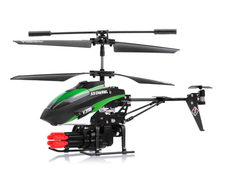 Радиоуправляемый вертолет WLtoys V398 — модель вертолета с ракетной установкой и снарядами (6 ракет). Радиус действия пульта около 10 метров. Время полета составляет, примерно, 7 минут. Вы можете стрелять одиночными выстрелами и очередями. Конструкция вертолета на радиоуправлении легкая и позволяет при авариях избегать повреждений.