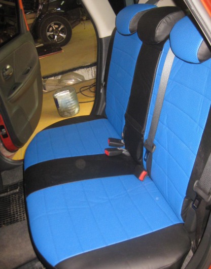 Вопросы и отзывы про Чехлы автомобильные для Nissan Note (черно-синие, экокожа)