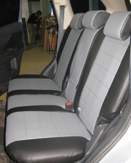 Вопросы и отзывы про Чехлы автомобильные для Mitsubishi Pajero III/IV, 7 мест, от 00 г.в. (черно-светло-серые, экокожа)