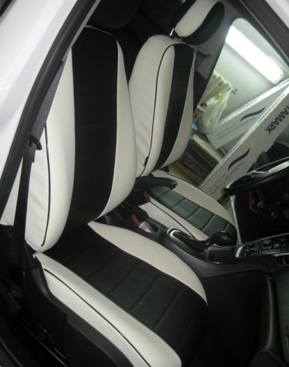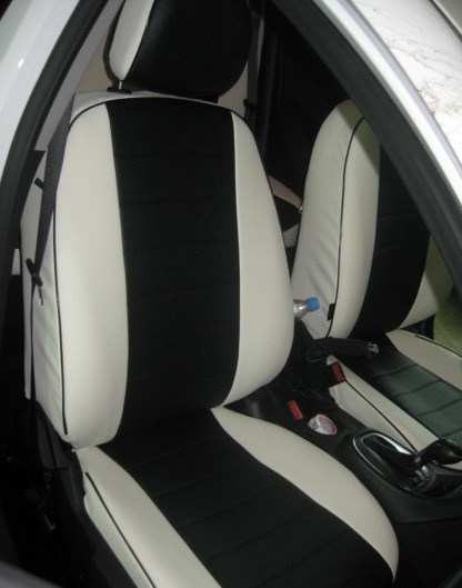 Вопросы и отзывы про Чехлы автомобильные для Opel Astra J хэтчбек от 09 г.в. (бело-черные, экокожа)