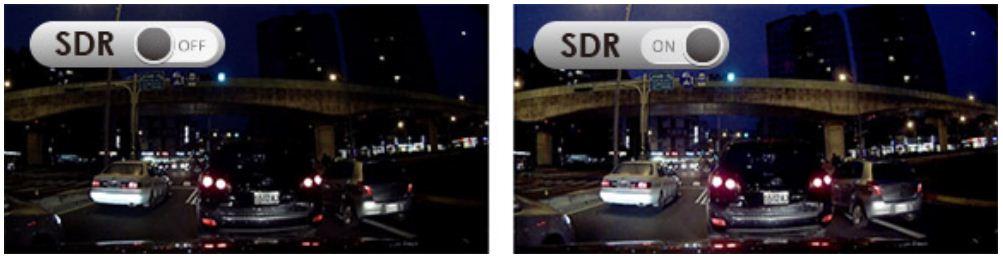 Технология SDR. Видеорегистратор оснащен процессором для обработки изображения с технологией SDR и CMOS-матрицей нового поколения, которые обеспечивают хорошее качество видео при движении на дороге с плохой освещенностью.