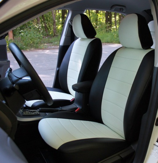 Вопросы и отзывы про Чехлы автомобильные для Toyota Corolla, седан, 07-13 г.в. (черно-белые, экокожа)