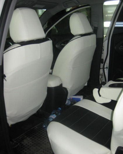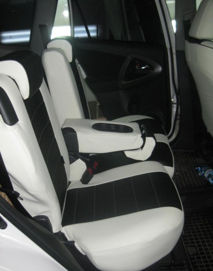 Вопросы и отзывы про Чехлы автомобильные для Toyota RAV-4 III 06-13 г.в. (бело-черные, экокожа)