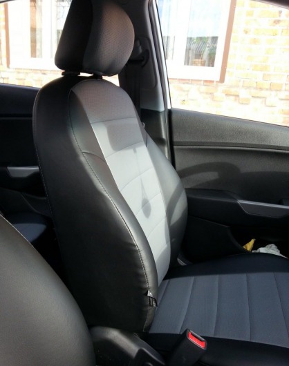 Вопросы и отзывы про Чехлы автомобильные для Kia Rio III, седан, от 11 г.в. (черно-светло-серые, экокожа)