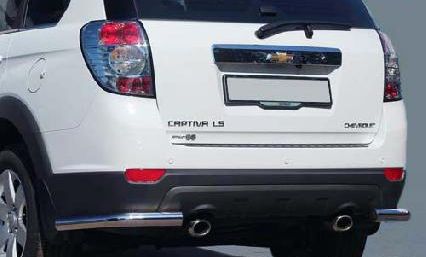 Уголки на задний бампер Chevrolet Captiva защищают задний бампер автомобиля от различных механических повреждений при столкновениях на дороге и неудачных парковках. А кроме этого, защита заднего бампера для Шевроле Каптива — это дополнительная деталь тюнинга.