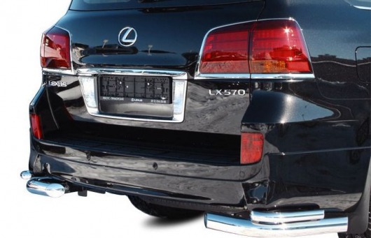 Защита заднего бампера для Lexus LX570 Sport – это двойные защитные уголки на бампер из нержавеющей стали диаметром 76/42 мм.