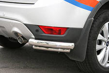 Защита заднего бампера уголки предназначена для автомобилей Ford Kuga от 2013 г.в. Вам не придется подгонять защиту под размеры бампера вашего авто. И с монтажом проблем не возникнет: установка защиты заднего бампера производится в штатные отверстия, а значит, необходимость сверлить кузов отпадает.