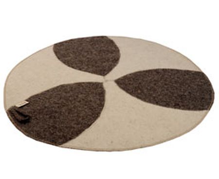 Коврик для сауны и бани изготовлен из высококачественного войлока. Такой материал не перегревается и хорошо выводит влагу, поэтому защищает открытые части тела парильщиков от соприкосновения с горячими полками и лавками. Выполненный в виде щита из светлой и темной ткани, банный коврик станет оригинальным подарком любителям банных процедур.