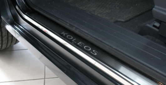 Внутренняя накладка на порог Renault Koleos  — это аксессуар автомобильного тюнинга, который защищает внутренний порог от механических повреждений при посадке и высадке из машины. Декоративные накладки с рисунком на внутренние пороги предназначены для автомобилей Renault Koleos от 2006 г.в.