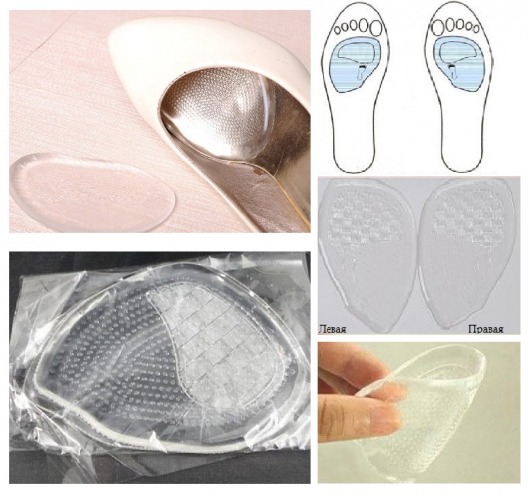 Состоят подушечки из полиуретанового геля; стелька при носке не выделяет никаких неприятных запахов. Гелевые подушечки очень просты в применении: необходимо достать их из упаковки, снять защитную плёнку с подушечки (пленку не рекомендуется выбрасывать – она вам ещё пригодится) и приклеить подушечку липкой стороной на стельку обуви, при этом плотно прижав. Гелевые подушечки являются абсолютно гигиеничными, они не впитывают в себя влагу, а значит, не способствуют размножению бактерий.
