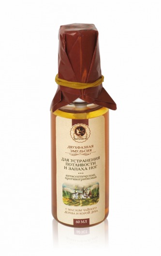 Двухфазная эмульсия антисептическая, противогрибковая (Клеона) устраняет потливость и запах ног.