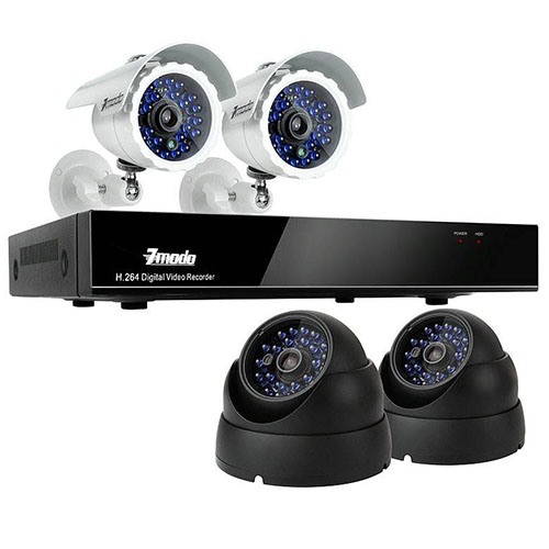 Видеокомплект Zmodo Эконом состоит из 2-х влагозащищенных и 2-х купольных внутренних камер и регистратора. Камеры оснащены ИК-подсветкой для записи видео в темное время суток. Система предназначена для контроля за домом, приусадебным участком, гаражом и небольшим офисом: ведет фото- и видеозапись, укомплектована 2 микрофонами, а благодаря встроенным в камеры датчикам движения выполняет функцию сигнализации. Zmodo Эконом может управляться через Интернет (в том числе с устройств iPhone, Android, Windows Mobile, Symbian и Blackberry).