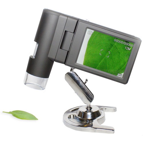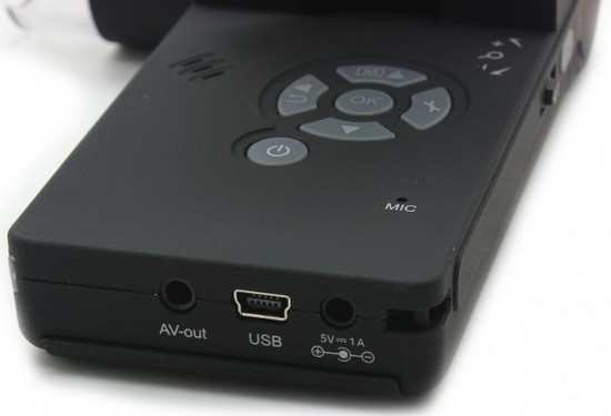 Цифровой USB микроскоп устроен следующим образом: цифровая камера CMOS-типа установлена вместо объектива и соединена с встроенным ЖК-дисплеем 3 дюйма. Помимо дисплея, изображение можно выводить на компьютер с помощью usb кабеля либо на экран проектора или телевизора через стандартный AV-кабель. В режиме реального времени вы будете рассматривать увеличенное изображение на экране.