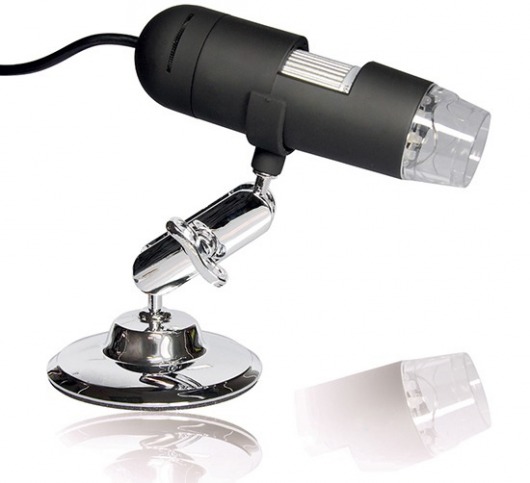 Цифровой USB микроскоп устроен следующим образом: встроенная цифровая камера CMOS-типа заменяет собой окуляр (как в традиционном микроскопе) и соединяется с компьютером с помощью usb кабеля. В режиме реального времени вы будете рассматривать увеличенное изображение на экране своего компьютера, ноутбука или планшета. Такой метод гораздо комфортнее и безопаснее для здоровья. Вам не придется сидеть уткнувшись в окуляр, как при работе с обычным микроскопом, и можно использовать прибор для коллективного наблюдения.